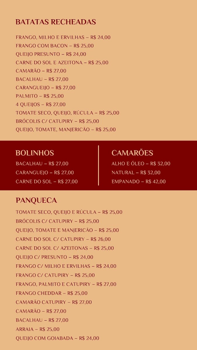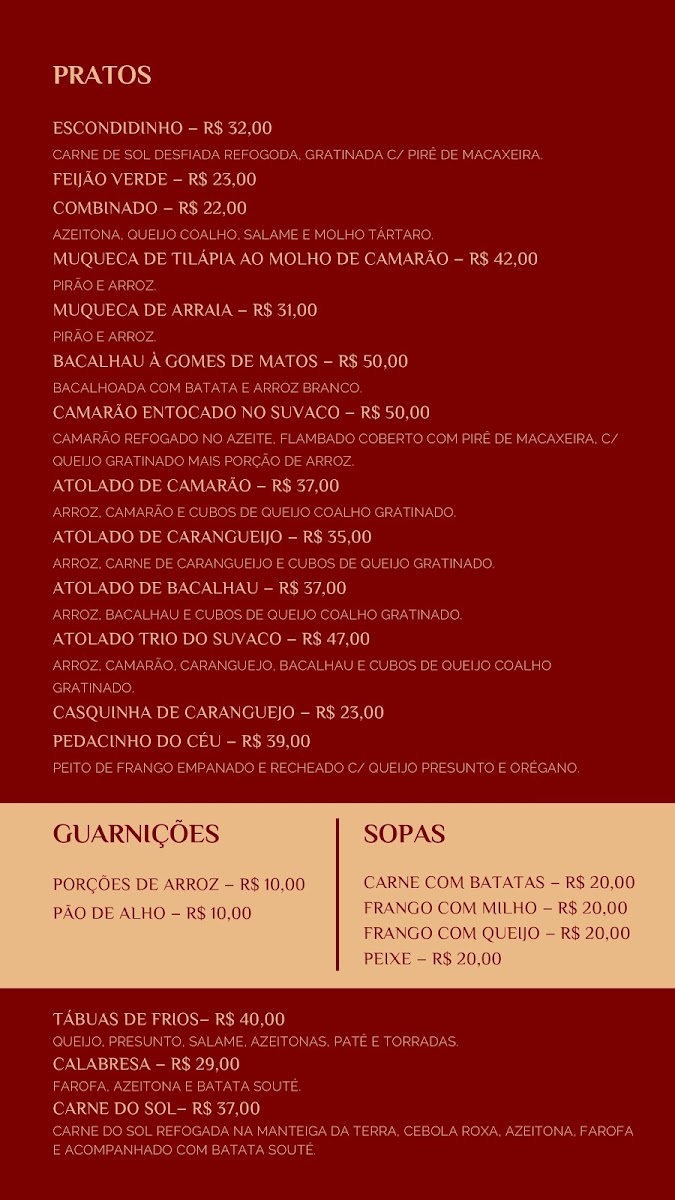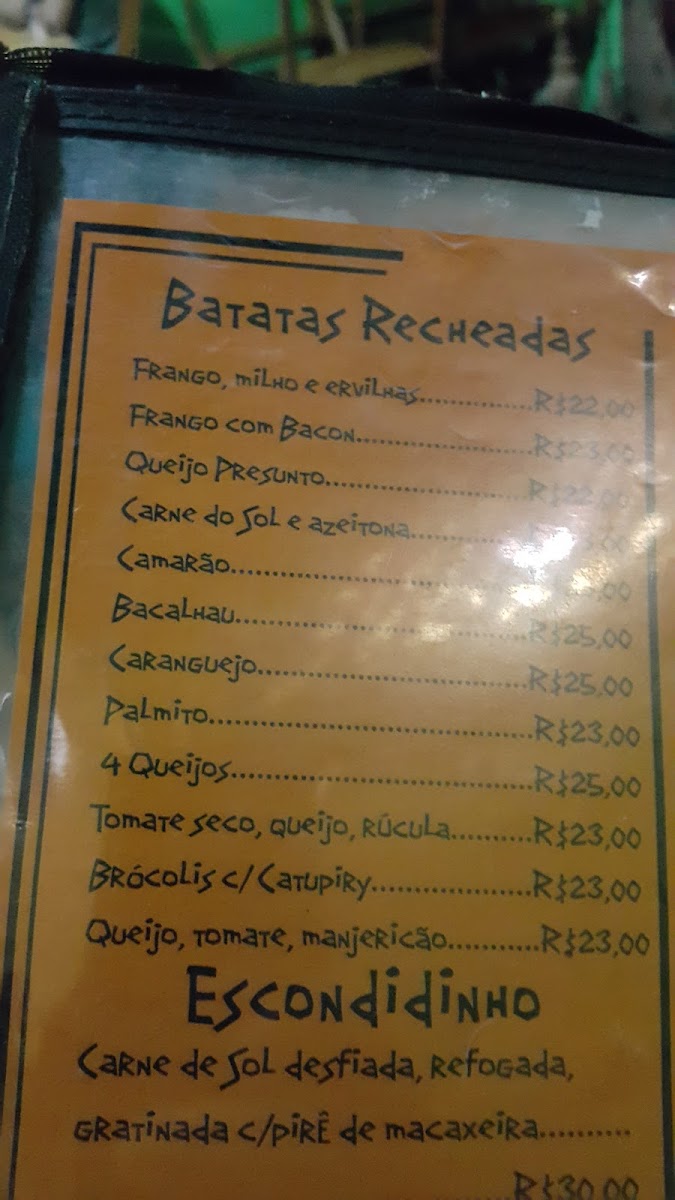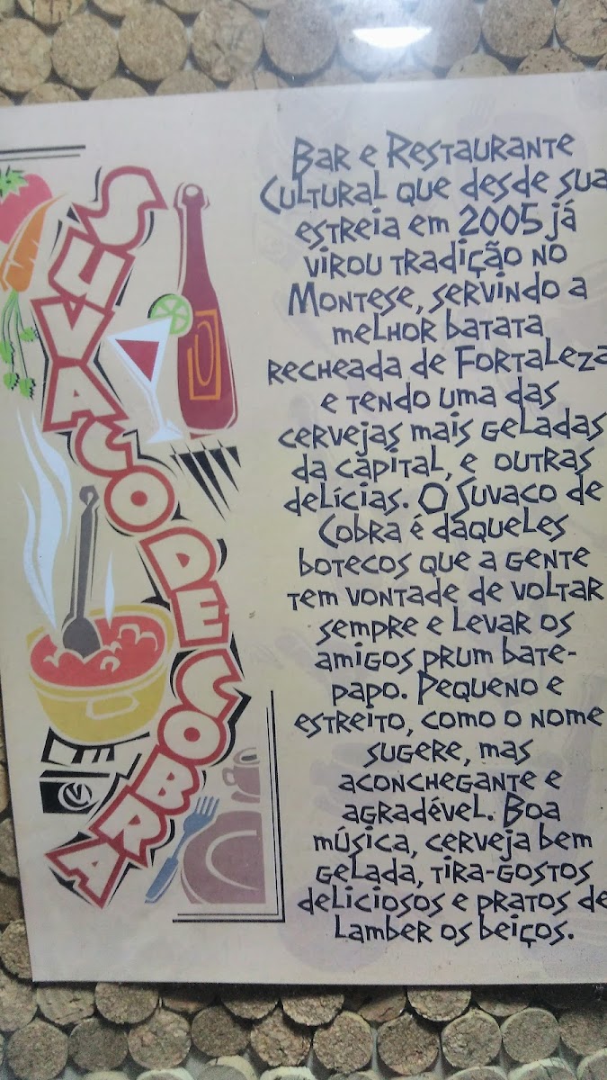 Suvaco De Cobra offers a simple yet flavorful menu that highlights traditional Brazilian comfort food. Among the standout items is the Batata Recheada, a stuffed potato that brings a satisfying blend of flavors, perfect for a light bite or a starter. Another must-try is the Atolado de Camarão, a rich shrimp stew that captures the essence of regional coastal cuisine. This hearty dish combines tender shrimp with a savory, spiced broth. The menu's offerings are crafted with a focus on fresh, local ingredients, making it a delightful destination for those wanting an authentic taste of Fortaleza's culinary scene. While the prices for the dishes weren't listed, the overall vibe of the restaurant suggests a welcoming and unpretentious setting for enjoying these flavorful dishes.
